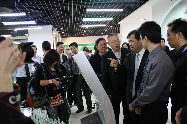開業儀式完畢后,副市長甘新、市政協副主席平欣光等市領導一行參觀了展貿城中進駐商戶的展廳。在廣日集團吳裕英女士、廣州廣日電氣設備有限公司總經理吳文斌先生的陪同下,市長一行體驗了我司展廳中的照明觸摸監控系統,主要通過簡單的觸屏方式控制系統中所有室內照明的設備,甘新副市長對我司照明系統作出高度評價。隨后,廣東電視臺及相關媒體對我司總經理吳文斌先生進行采訪,吳總對LED行業的相關信息與發展前景提出自己的見解。我司將籍光谷這一全球最大LED展貿平臺,加強行業交流、合作,提升技術創新能力,提高產品質量,打造LED知名品牌。