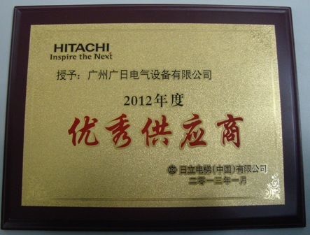 【公司榮譽】我司榮獲日立電梯(中國)有限公司2012年度優秀供應商