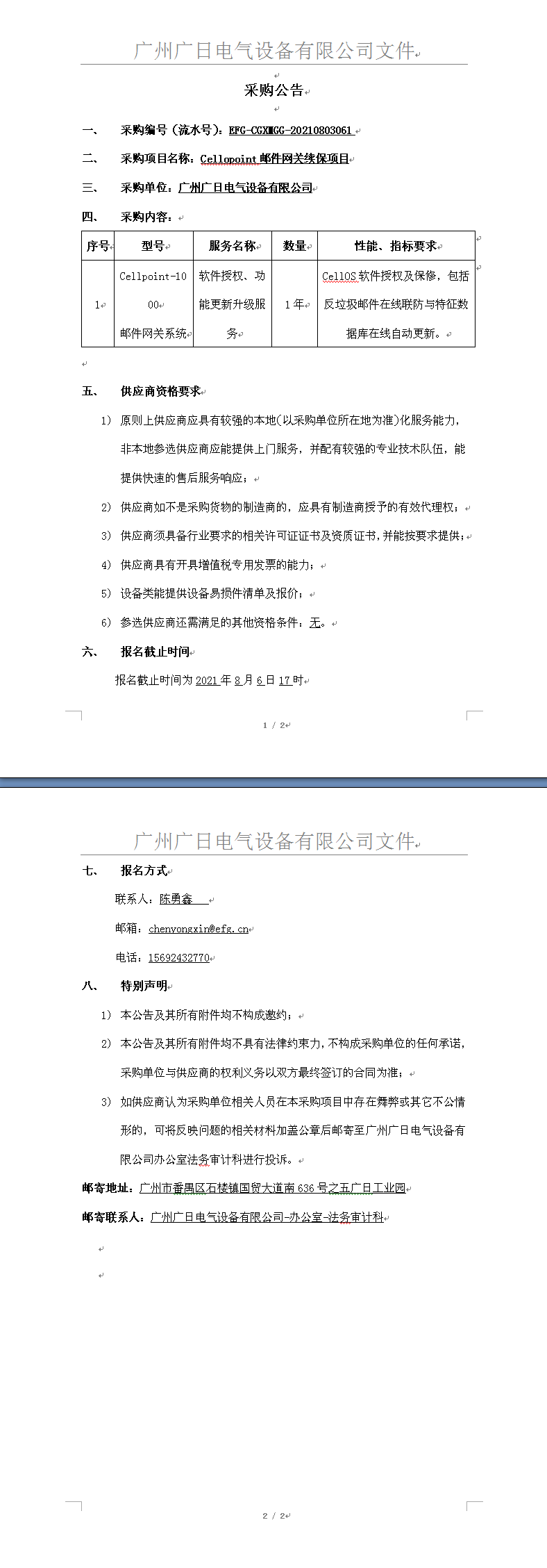 Cellopoint郵件網關續保項目