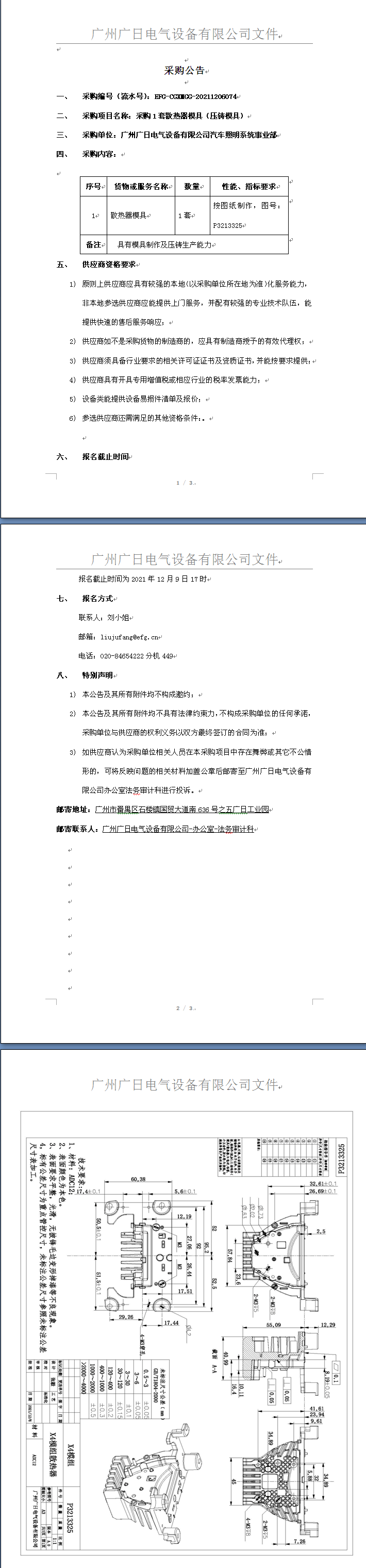 采購1套散熱器模具