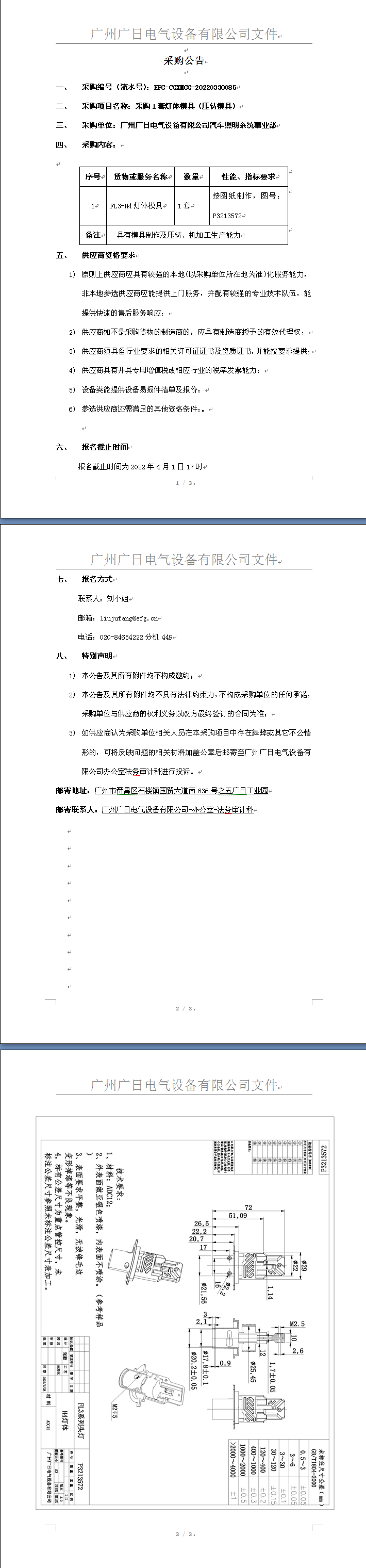 采購1套H4燈體模具