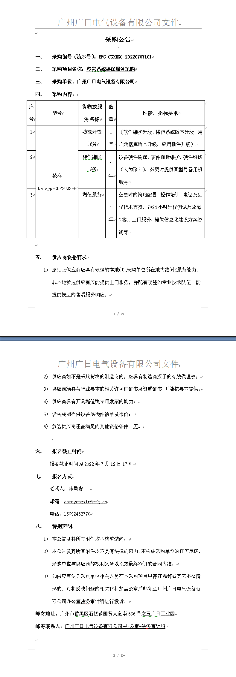 容災系統續保服務采購