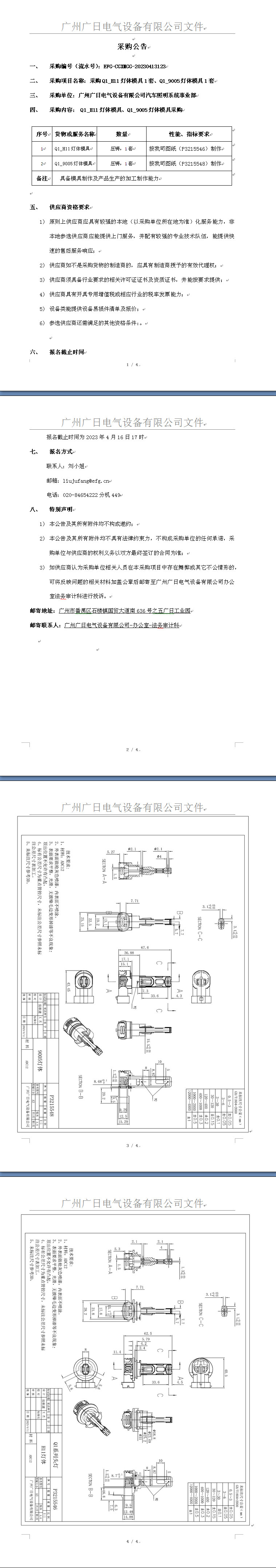 Q1_H11燈體模具、Q1_9005燈體模具采購公告