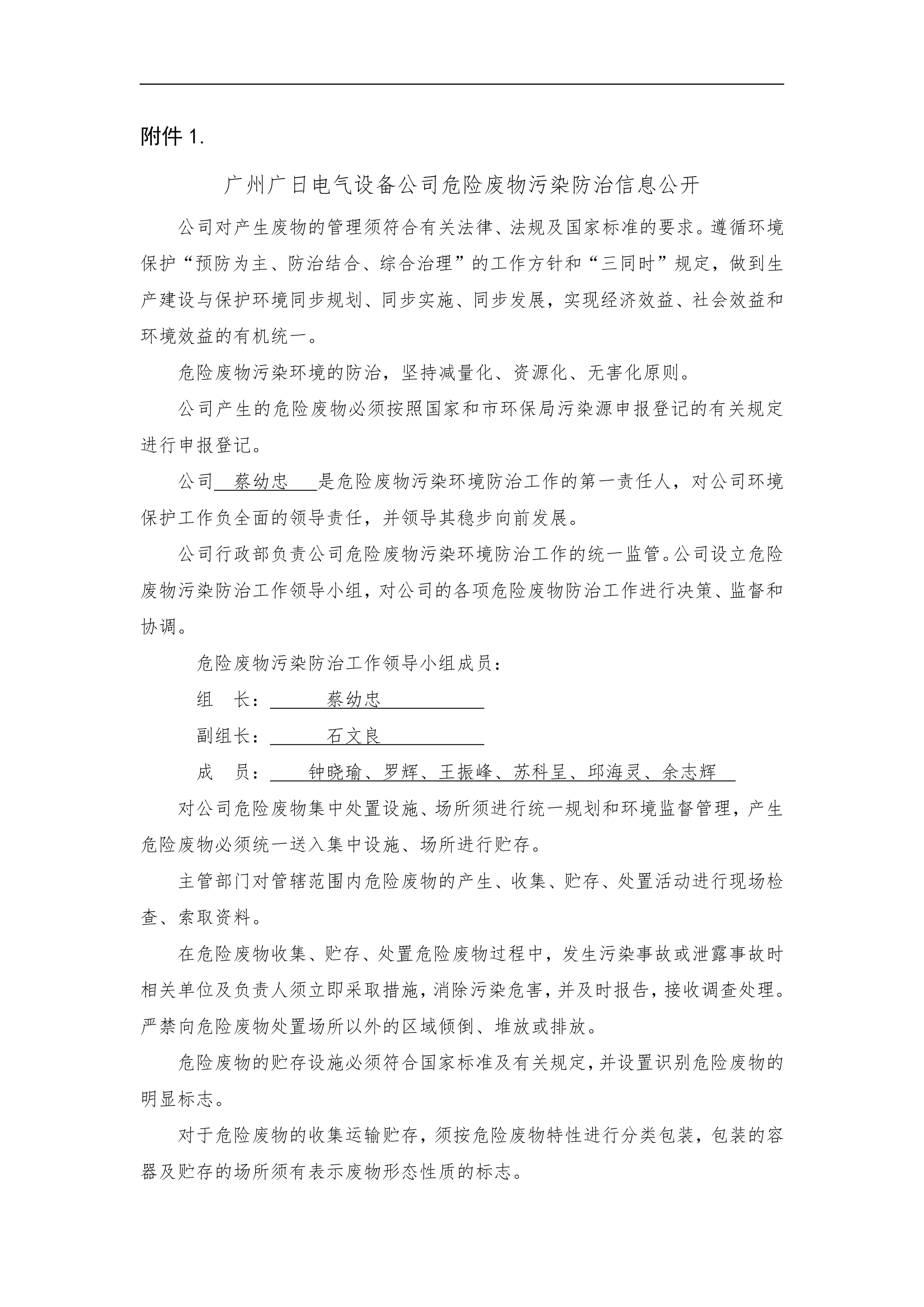 廣州廣日電氣設備公司危險廢物污染防治信息公開