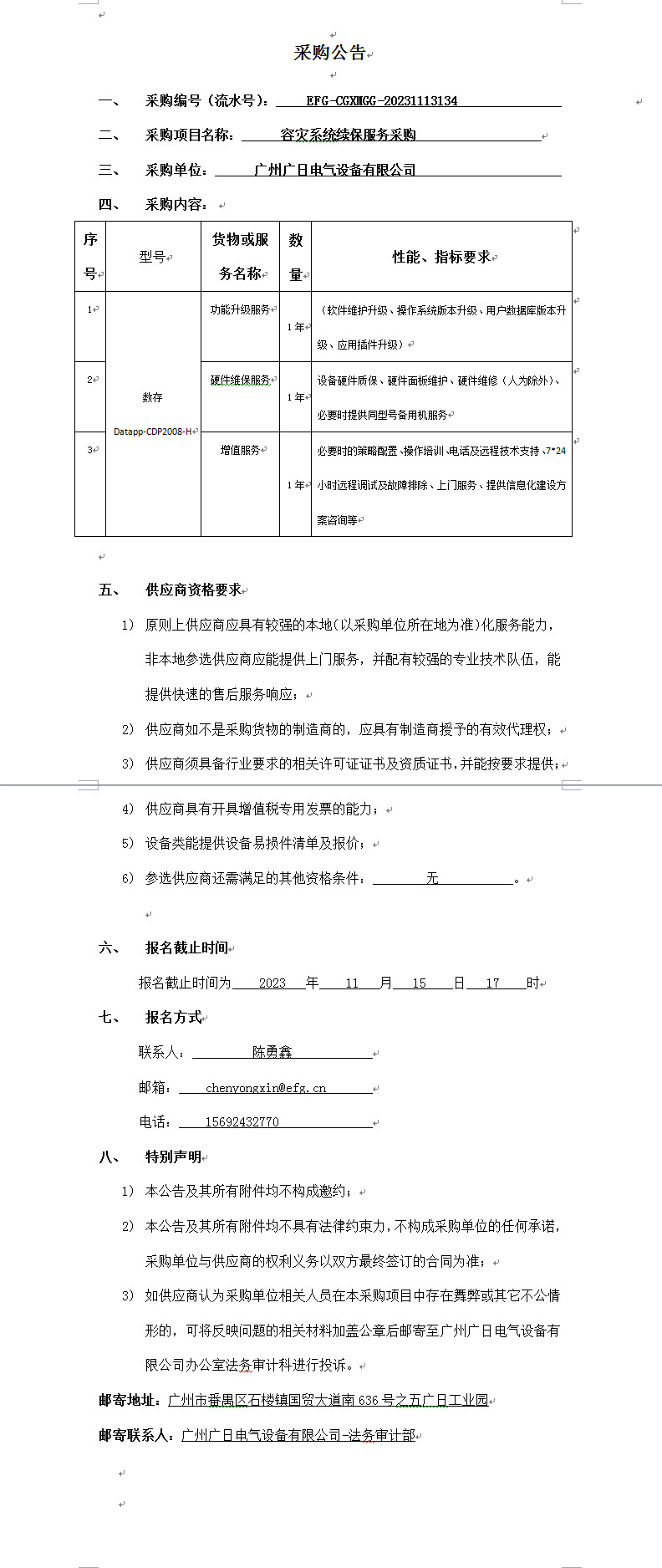 容災系統續保服務采購