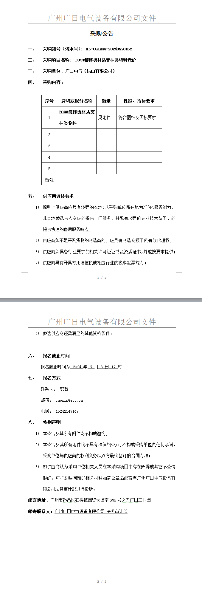 B03#前支柱類物料競價前公示