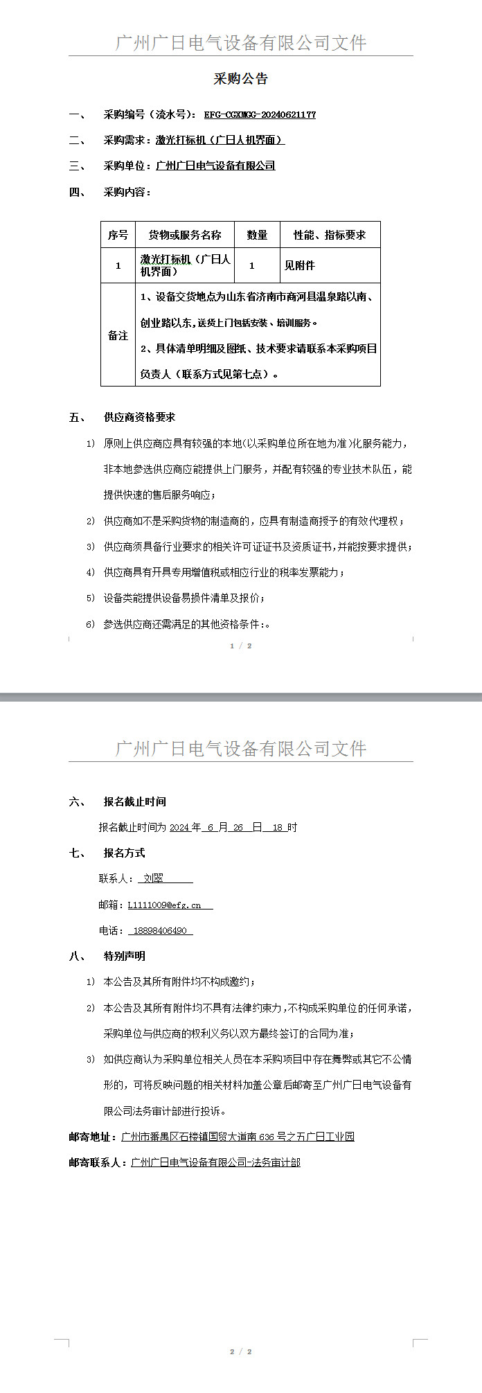 激光打標機(廣日人機界面采購)