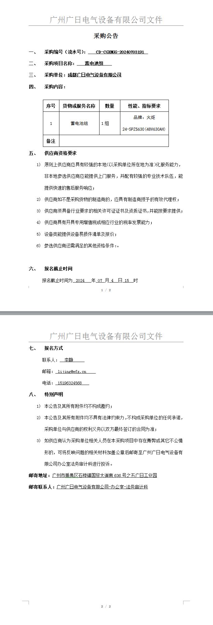 蓄電池組采購項目