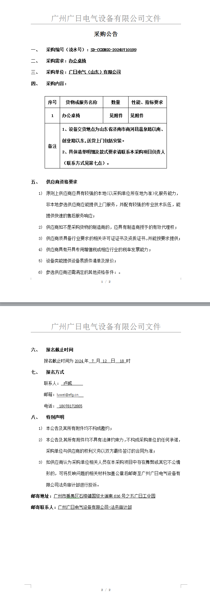 辦公桌椅采購項目