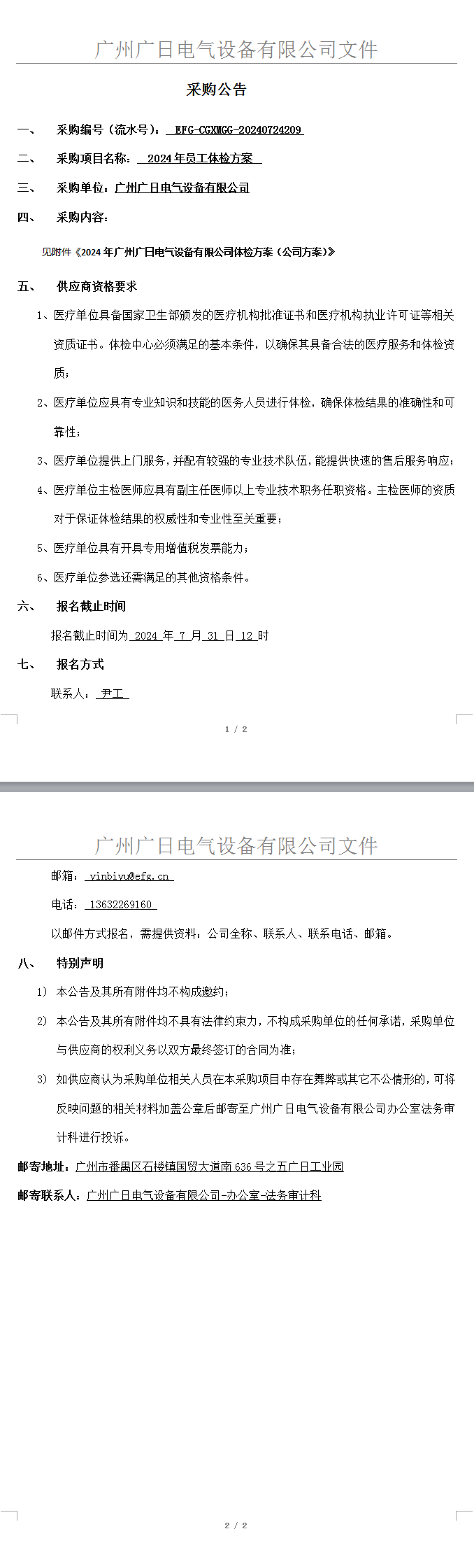 2024年員工體檢方案
