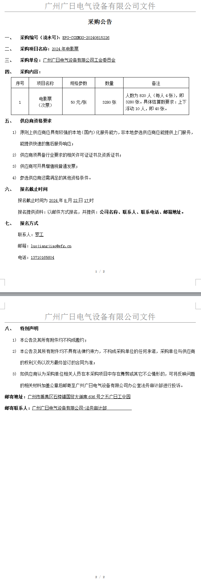 2024年電影票采購項目