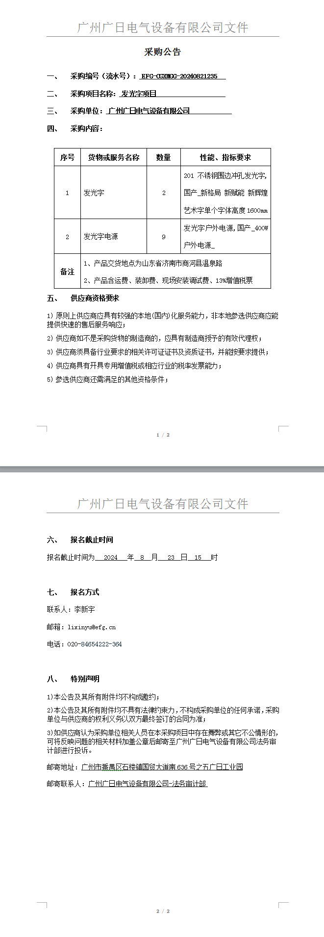 發光字采購項目
