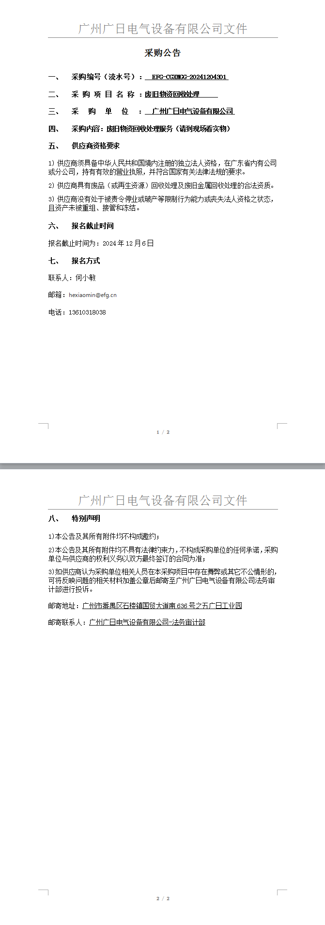 廢舊物資回收處理
