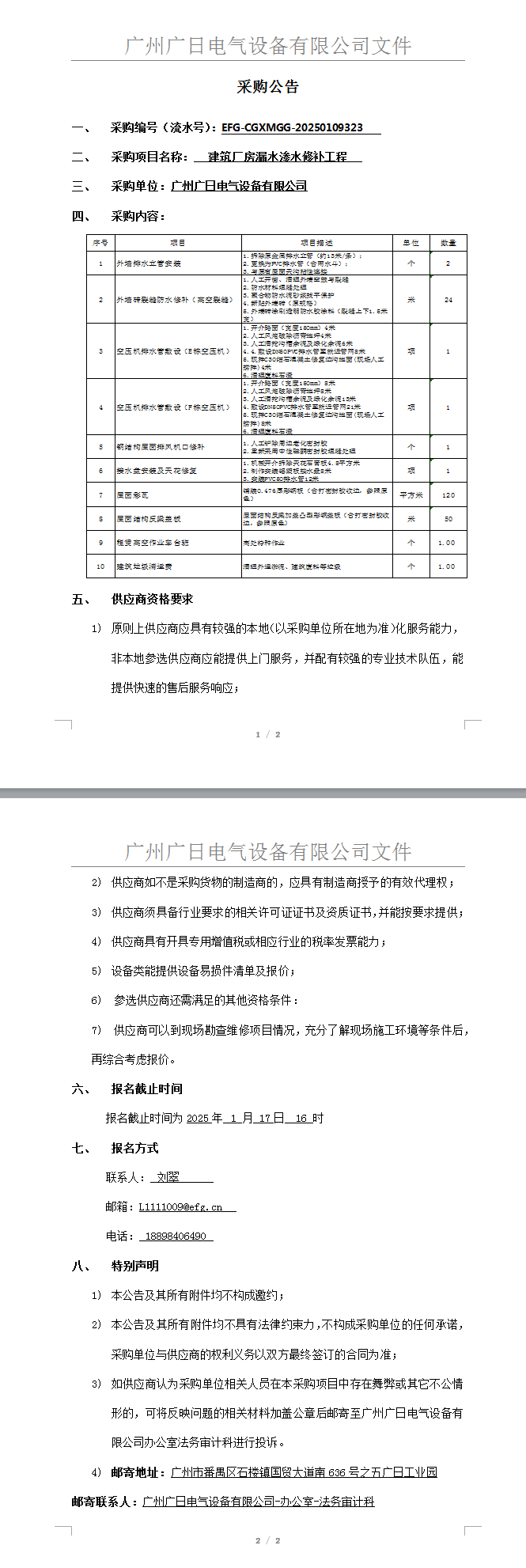 建筑廠房漏水滲水修補工程采購項目