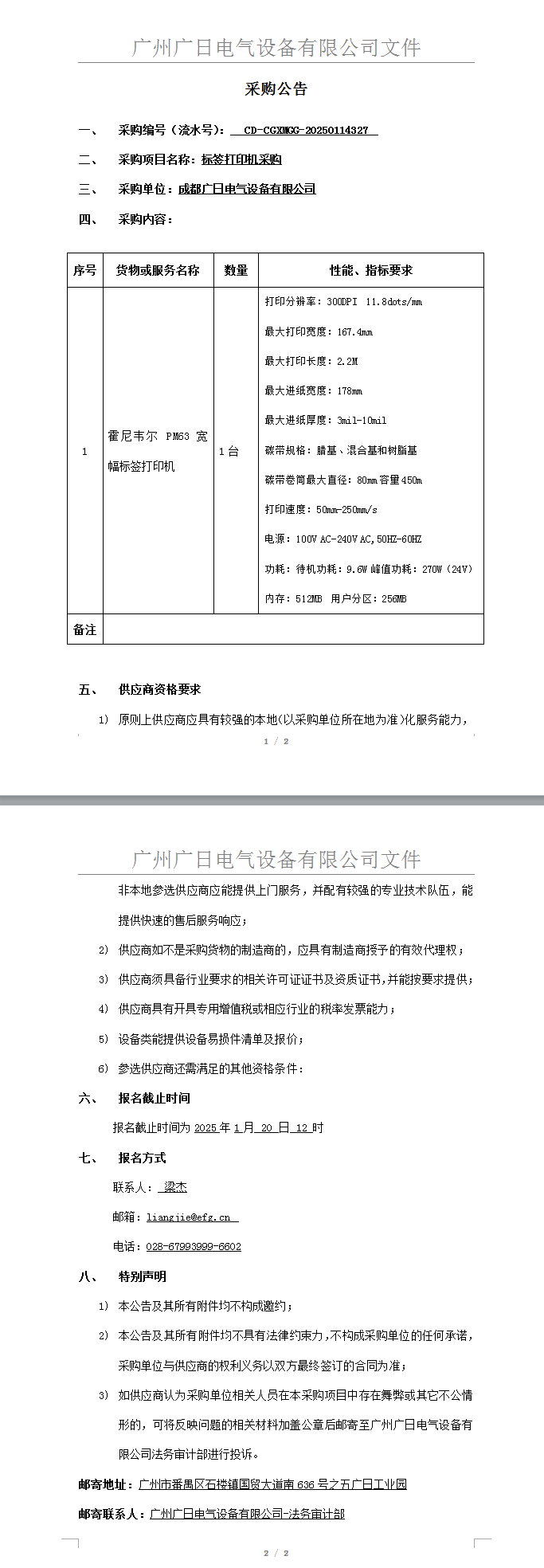 標簽打印機采購