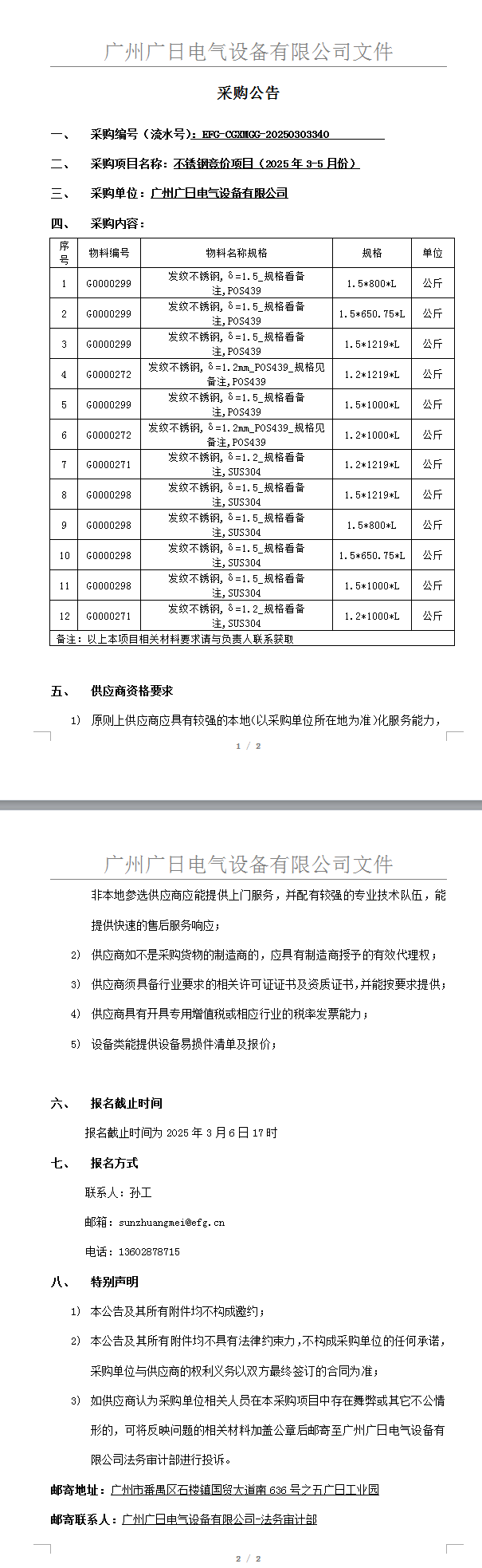 不銹鋼競價項目(2025年3-5月份