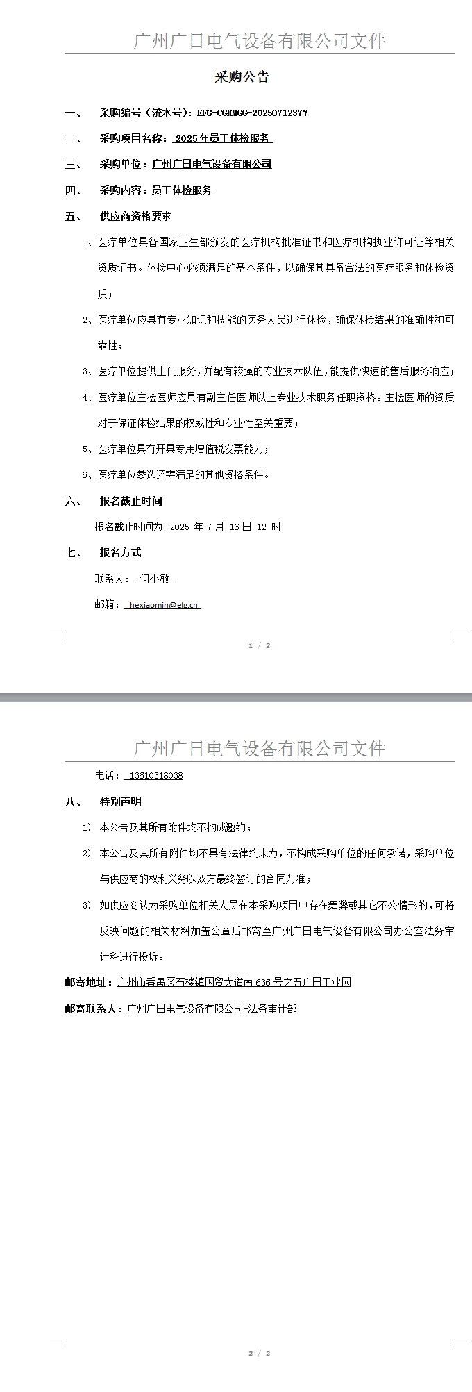 2025年度員工體檢服務